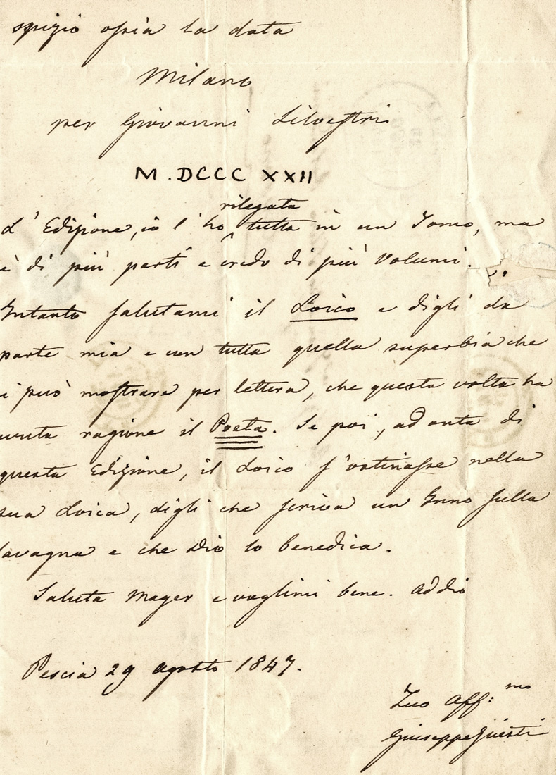 Datata 29 agosto 1847, Pescia.