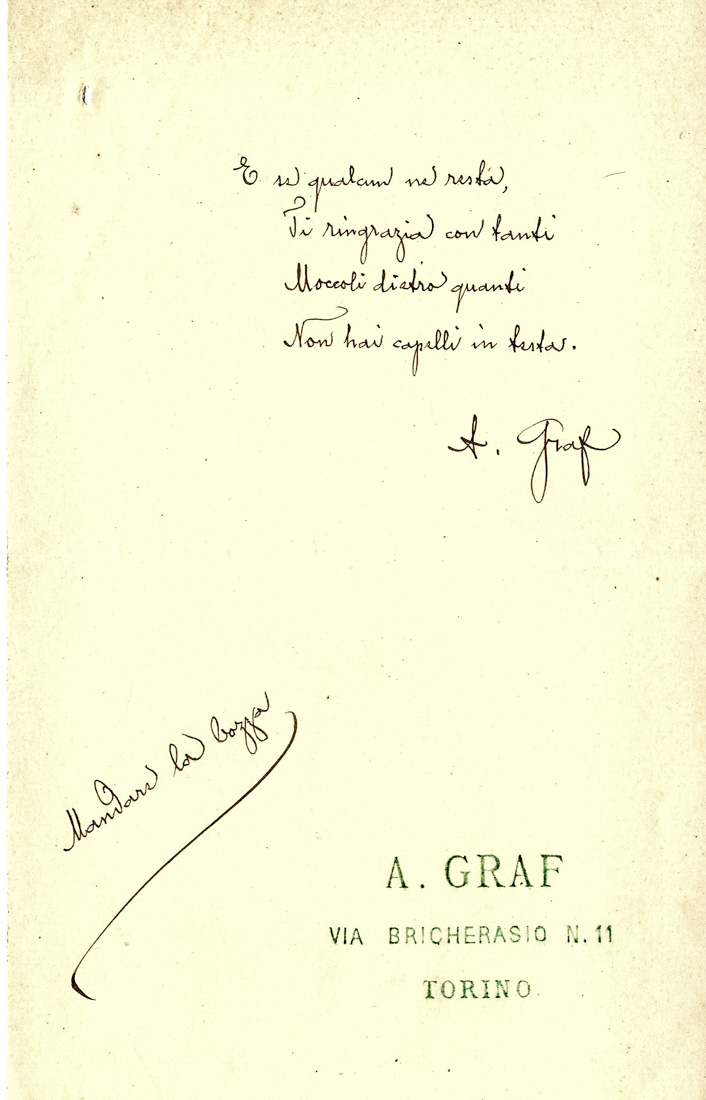 Graf Arturo, 'A un guidatore di automobili'. Brano poetico autografo firmato.