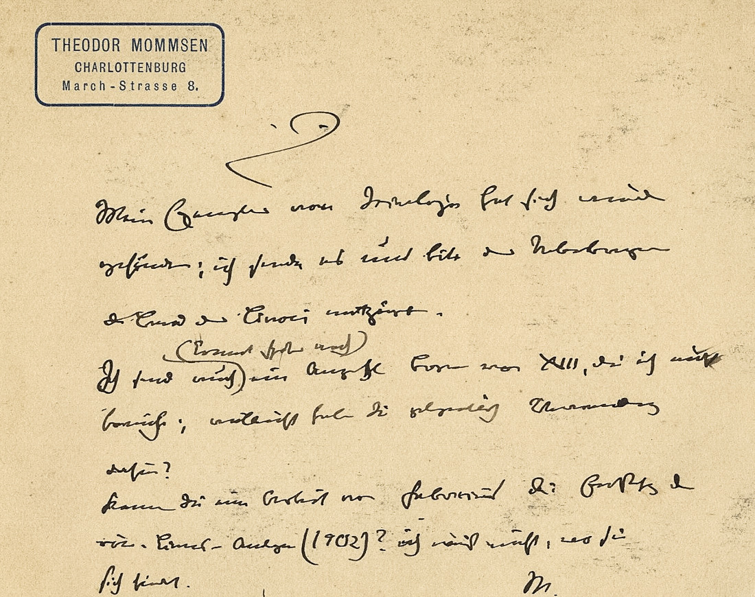Mommsen Theodor, Biglietto autografo siglato.