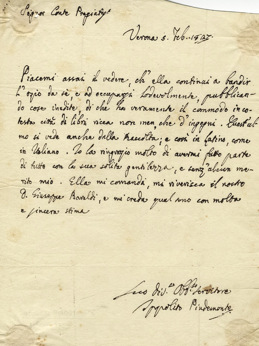 Datata 5 febbraio 1827, Verona.