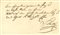 Manoscritto a inchiostro nero. 1 carta scritta al recto. Testo in tedesco. Due brevi strappi della carta. Dimensioni: 135x210 mm.