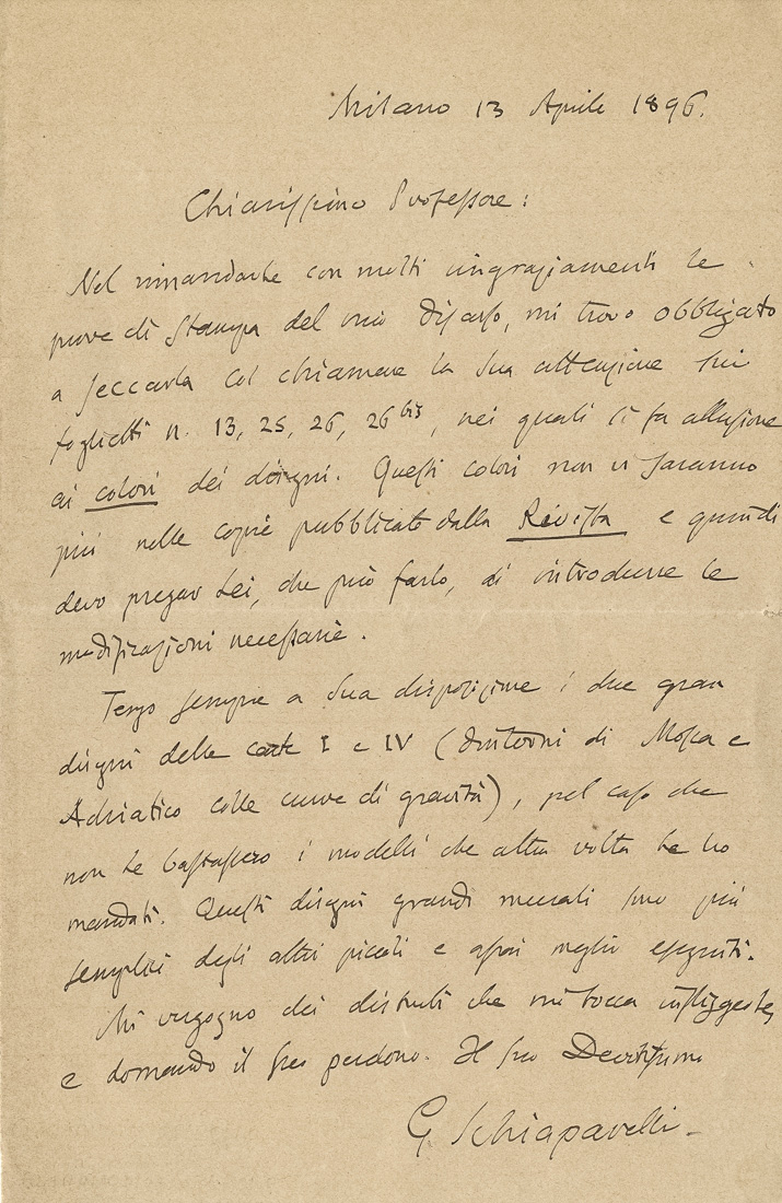 Schiaparelli Giovanni, Lettera autografa firmata inviata ad un...