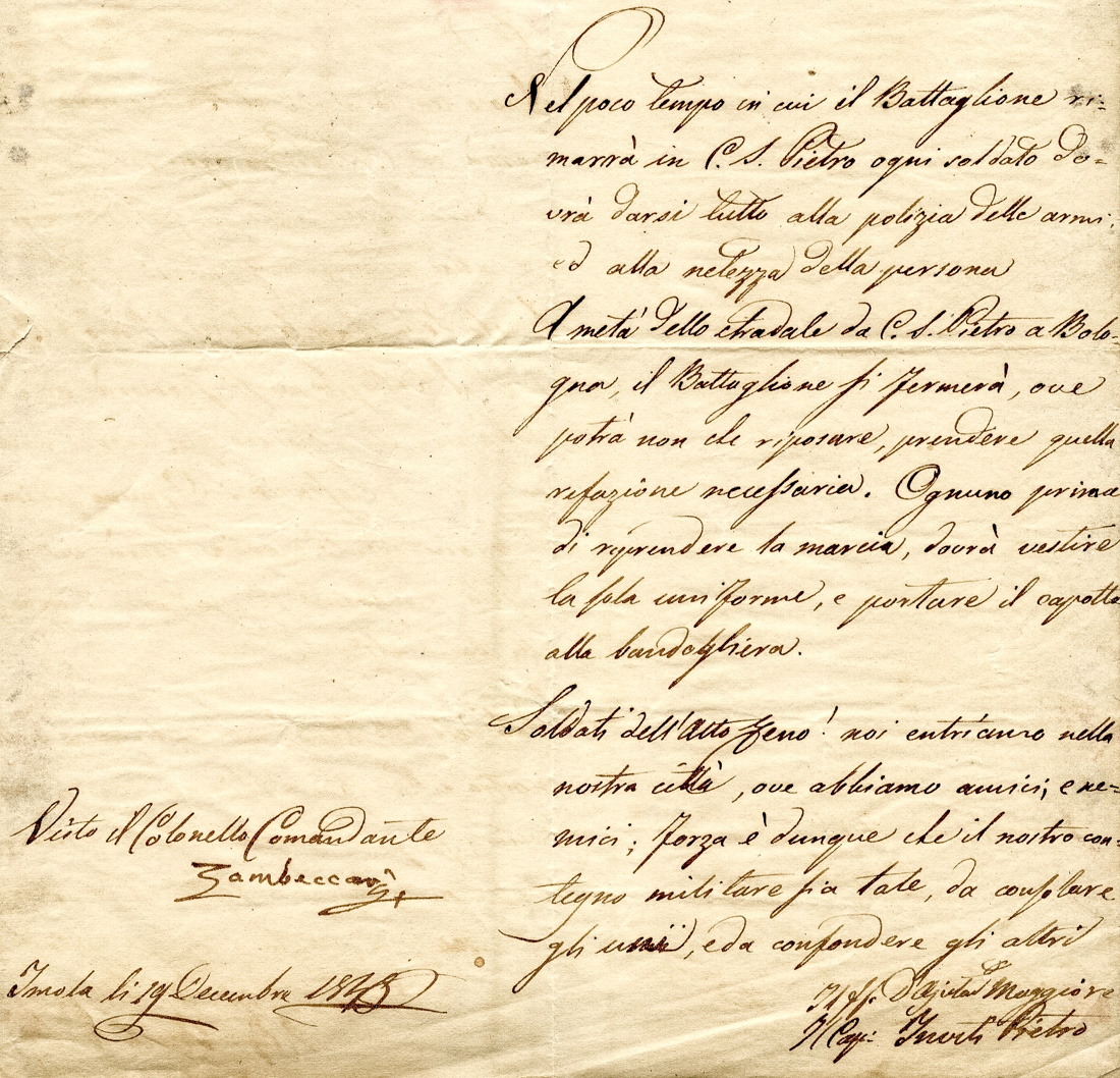 Zambeccari Livio, 2 documenti con firma autografa.