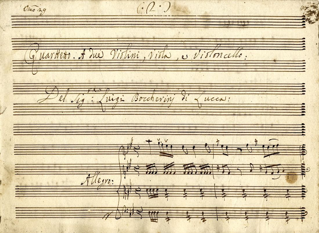 Boccherini Luigi, Quartetto a due violini, viola e violoncello / Del Sig. Boccherini di Lucca.