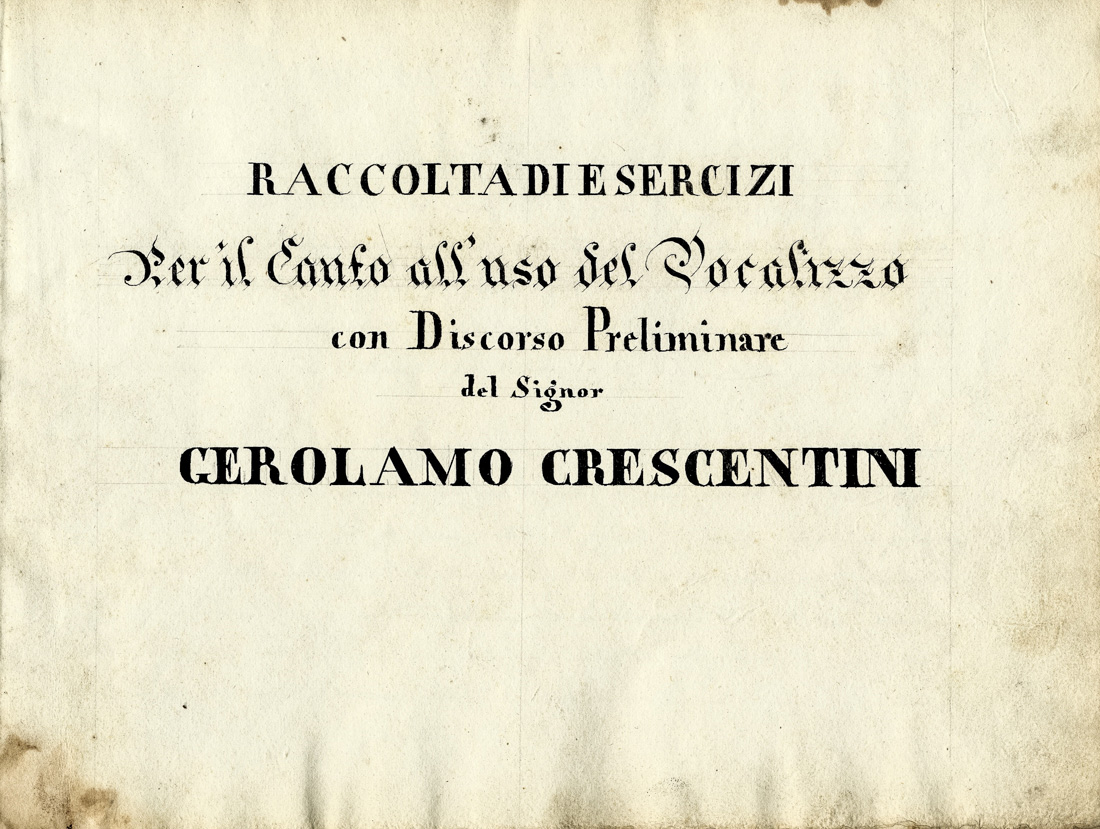 Crescentini Girolamo, Raccolta di esercizi / per il canto all'uso del Vocalizzo / con Discorso Preliminare / del Signor / Gerolamo Crescentini.