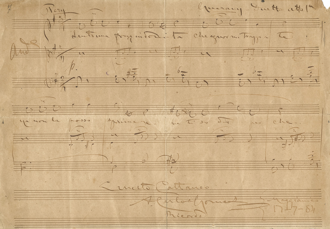 Gomes Carlo Antonio, Citazione musicale autografa dall'opera Guarany.Datata...