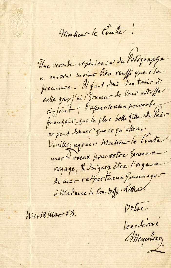 Meyerbeer Giacomo, Lettera autografa firmata.