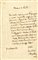 Manoscritto a inchiostro nero. 1 bifolio, scritta 1 pagina. Testo in francese. Su carta intestata dell'autore (timbro a secco con monogrammi). Dimensioni: 209x135 mm.
