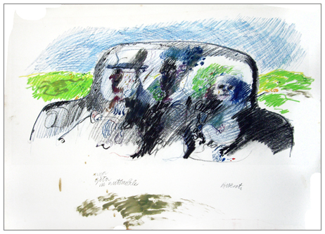 ANTONIO POSSENTI Lucca 1933 Una gita in automobile T.m. su cartoncino 50 x 70. Firma in b. a d., titolo in b. a s. B.A.: 400