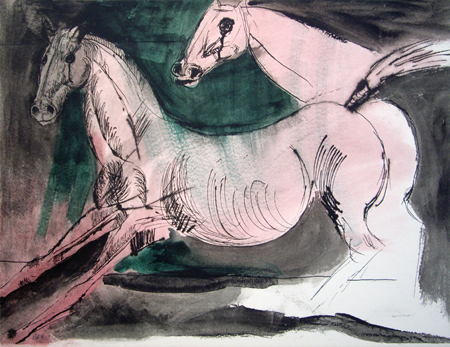 BRUNO CASSINARI Piacenza 1912 – Milano 1992 Il cavallo Litografia a 5 colori es. P. d’A. Firma in b. a d. (48 x 64 foglio e lito.) L’opera fa parte della cartella “D’apres il Cavallo” del 1981 composta di 5 litografie eseguite da Cassinari, Cesetti, Fiume, Messina, Sassu. Tiratura: 200 es. num. arabi + XX es. num. romani. Lastre biffate. Editore/stampatore: Teodorani, Milano. Pubbl.: “Bolaffi Catalogo della Grafica Italiana n.11” Giorgio Mondadori Editore, Milano, 1981, p.54. B.A.: 90