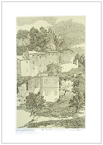 LEONARDO CASTELLANI Faenza 1896 – Urbino 1984 Dal Mercatale di Arcevia 1954 Acquaforte su fondino giallo paglia es.86/100 – 2° stato. Firma in b. a s., titolo in b. al c.; sulla lastra in b. al c. firma e data. (69,5 x 50 foglio – 38,5 x 24,3 inc.) Opera facente parte della cartella “6 acqueforti di Leonardo Castellani” Edizioni Ghelfi Verona. B.A.: 80