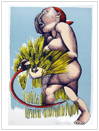 LUIGI GUERRICCHIO Matera 1932 – Matera 1996 Orazio – La Chimera 1977 Litografia a colori es.P.A. Firmata in b. a d. (40 x 30 foglio e lito.) Tiratura: 125 es. num. arabi + LXXV es. num. romani + 10 es. H.C. fuori commercio su carta Magnani di Pescia. Editori: Edizioni del Cherubino Livorno – Graphis Arte Livorno. Stampatori: Graphis Arte Livorno (litografie) – Bandecchi & Vivaldi Pontedera (testo). L’opera fa parte della cartella “Orazio – La Chimera” realizzata nel 1977. B.A.: 60