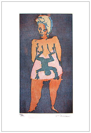MINO MACCARI Siena 1898 – Roma 1989 Senza titolo 1982 Linoleumgrafia a colori es.72/82. Firma in b. a d., timbro a secco in a. a d. (50 x 35 foglio – 38 x 20,5 lin.) L’opera fa parte della cartella “Maccari 1982” curata personalmente dall’artista per i suoi amici. B.A.: 70