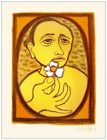 GIUSEPPE VIVIANI Agnano Pisano 1898 – Pisa 1965 Autoritratto 1964 Litografia a 3 colori. Firma e data in b. a d. + timbro a secco “Tarde sed tuto”. (76,5 x 56,6 foglio – 62 x 45,5 lito.) Tiratura: 160 es. su carta Arches. Editori: Vanni Scheiwiller, Milano – Paolo Belforte, Livorno. Pubbl.: “Giuseppe Viviani Catalogo Generale” a cura di Silvio Guarasci, Editore Saletta d’Arte Viviani s.a.s., Pisa, Stampatore Pacini S.p.a., Pisa, ottobre 2015, p.31. B.A.: A OFFERTA