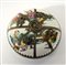 Piccola scatola in porcellana con inserti in metallo, marchio alla base, Cina, sec. XX (diam. 12 cm.) (difetti)