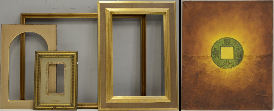Lotto 86 | Lotto composto da tre cornici e un dipinto orientale a tecnica mista su...