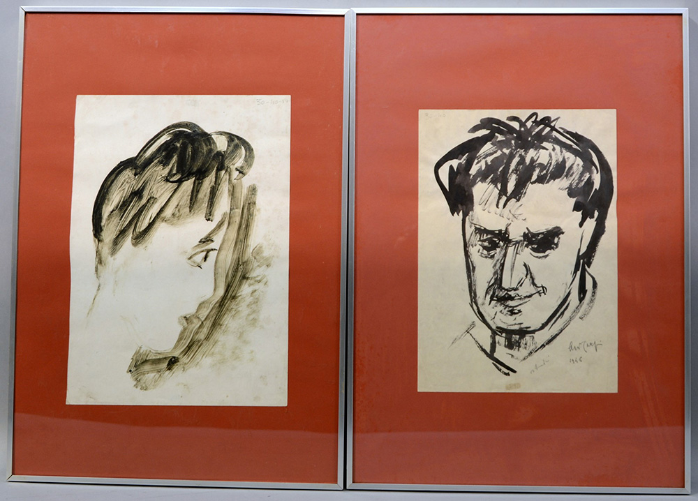 Carpi A. "Volti" Coppia di disegni a china su carta (cm 30x20 ca) uno firmato. In cornice