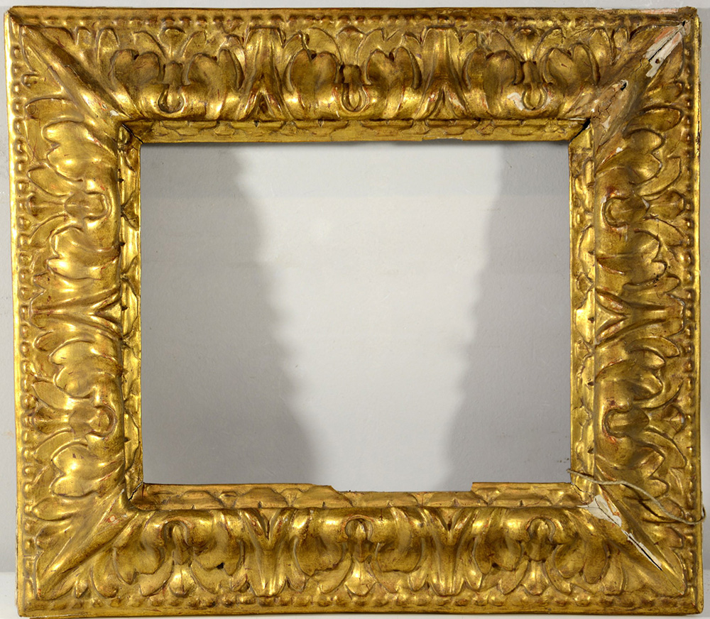 Cornice in legno intagliato e dorato. Sec. XVIII (luce cm 23x27) (difetti)