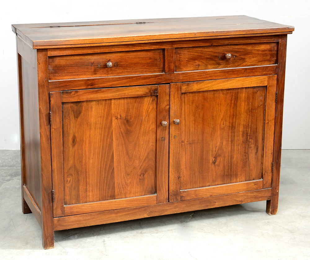 Madia con piano apribile, due finti cassetti e due sportelli riquadrati. (cm...