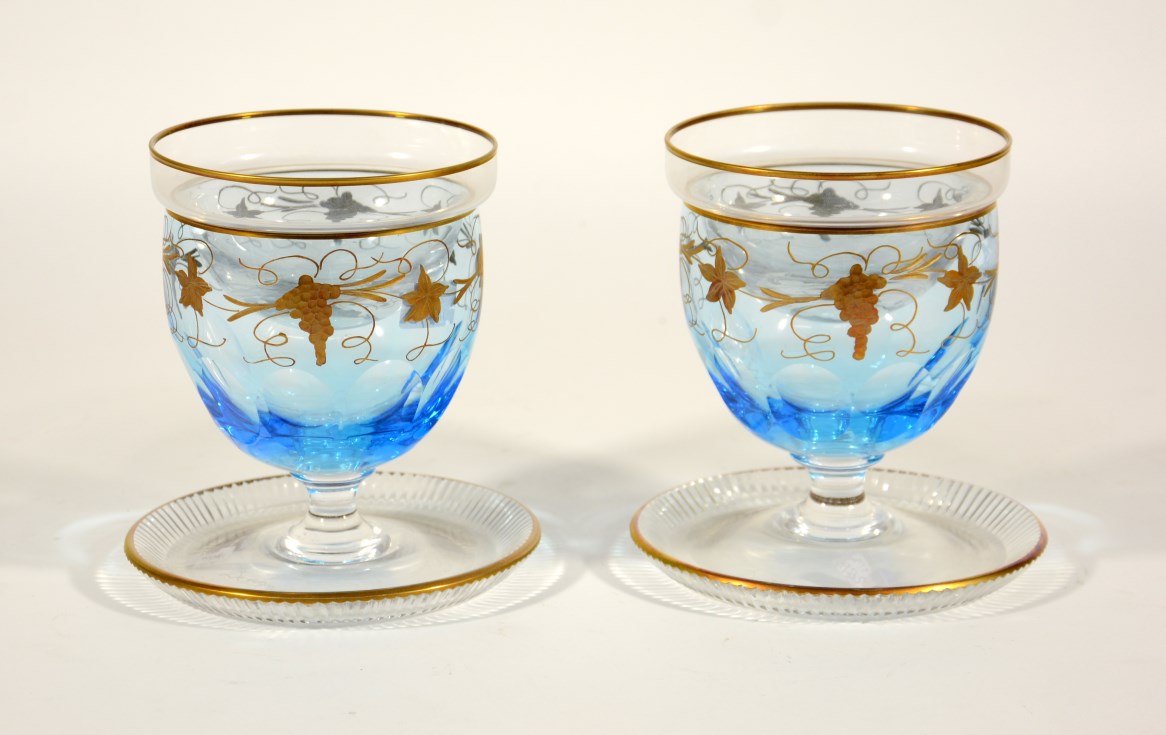 Coppia di porta caviale in cristallo molato e decorato oro a motivi vegetali