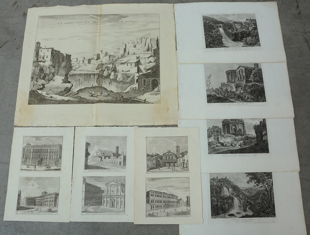 Lotto composto da numerose incisioni dei sec. XVIII e XIX a soggetto architettonico e paesaggistico (difetti)
