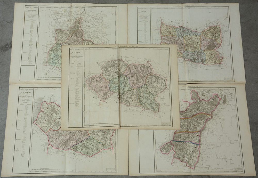 Lotto di cinque antiche carte geografiche tratte dal Atlas National de France...