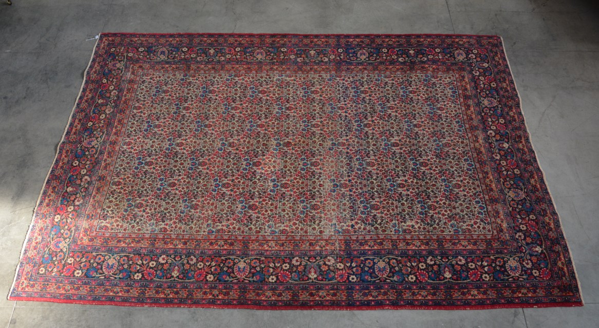 Tappeto Dorosh a disegno floreale "all over" su fondo bianco (cm 230x333). Persia, secolo XX (difetti e rapË)