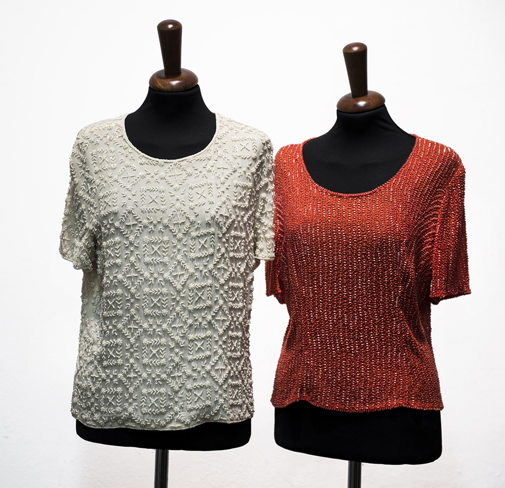 J. Sabbadini. Due camicette ricamate color crema e arancio. J. Sabbadini. Two embroidered blouses