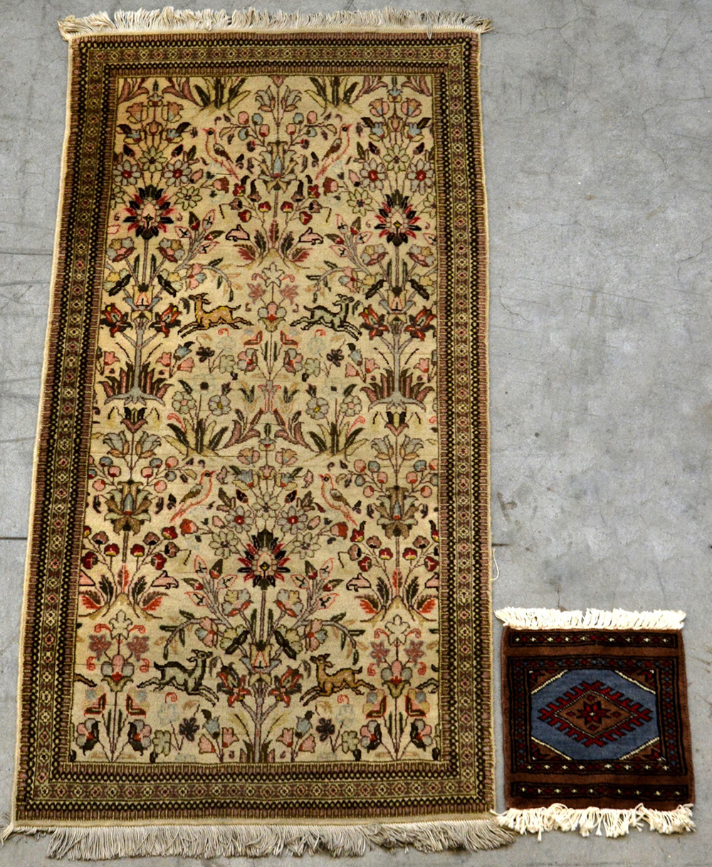 Lotto composto da uno scendiletto Tabriz del sec. XX ed un sottotelefono indiano (difetti)