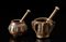 Lotto composto da due mortai in bronzo con pestelli, decorati a rilievo a bugne stilizzate. Sec. XVI (difetti)