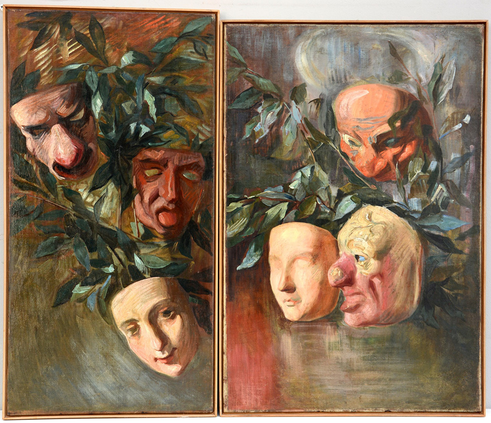 Lotto 267 | Ignoto "Studi di maschere" due dipinti ad olio su tela (cm 75x50 e 78x40)