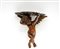 Mensola in legno a forma di putto che sorregge un pianetto sagomato (h.cm 36) (difetti)