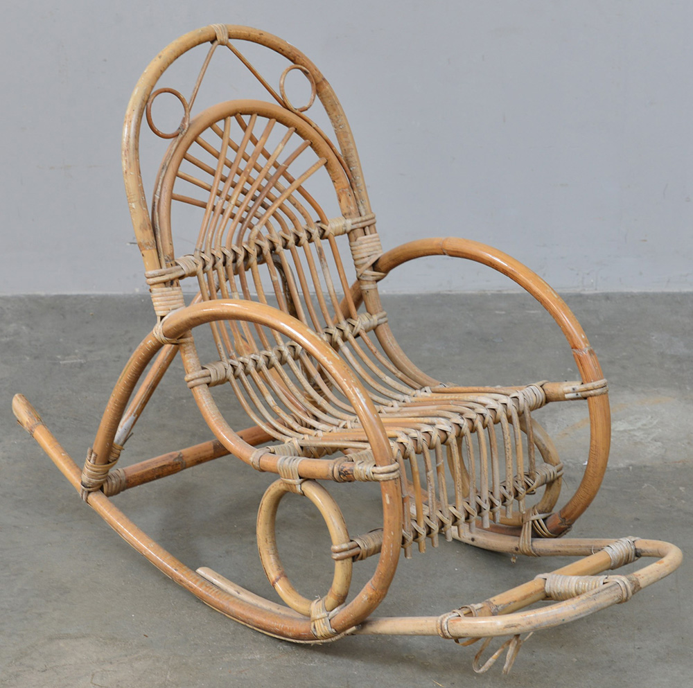 Lotto 337 | Piccola sedia a dondolo in malacca e canna d'India. Italia, sec XX (h cm 67)...