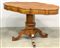 Tavolo di forma sagomata lastronato in noce a due cassetti nella fascia, gamba centrale sfaccettata terminante a quattro piedi sagomati. Sec. XIX (cm 130x82x74)(difetti)
