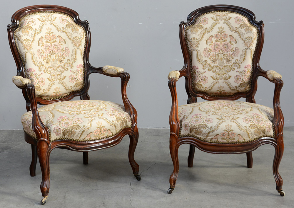 Coppia di poltrone con schienale, montanti e braccioli sagomatie scanalati....