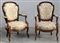 Coppia di poltrone con schienale, montanti e braccioli sagomatie scanalati. Piedi mossi sec. XIX