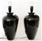 Coppia di lampade da tavolo con base in vetro nero e paralumi in shantung...