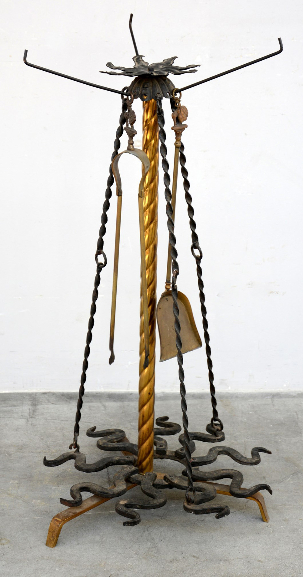 Piantana per set da camino in materiali metallici diversi (h cm 86) (difetti)