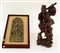 Lotto composto da una statuetta in legno raffigurante pescatore e da una placca in metallo di foggia orientale (difetti e rotture)