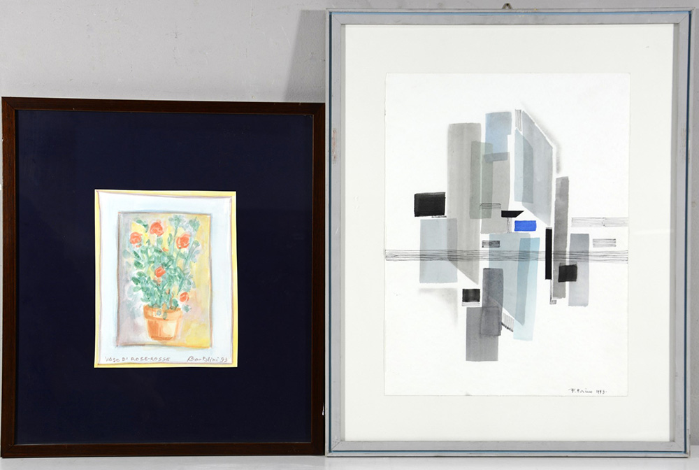 AA. VV. "Vaso con rose" e "Composizione astratta" lotto composto da due opere...