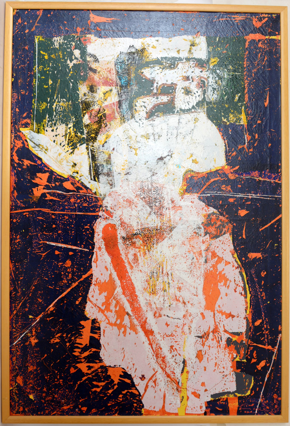 Firma indecifrata "Composizione astratta" 2005, tecnica mista su tela (cm 120x80) firmato e datato in basso ed al verso. In cornice