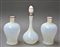Manifattura di Murano. Tre bottiglie in vetro soffiato opalescente con orlo...