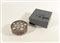 Lalique, Francia Scatola in vetro modello "Roger" decorata con tralci d'uva e pavoni di gusto Liberty. Produzione recente. Marcata alla base. Completa di scatola originale (d cm 13) (lievi difetti)