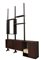 Mobile-libreria a due moduli e tre montanti con struttura in legno impiallacciato in palissandro, due stipi ad ante, due ripiani e vetrinetta, unita a un mobile pensile analogo con staffe in ottone. Italia anni '60 (cm 155x300x37) (difetti e mancanze)