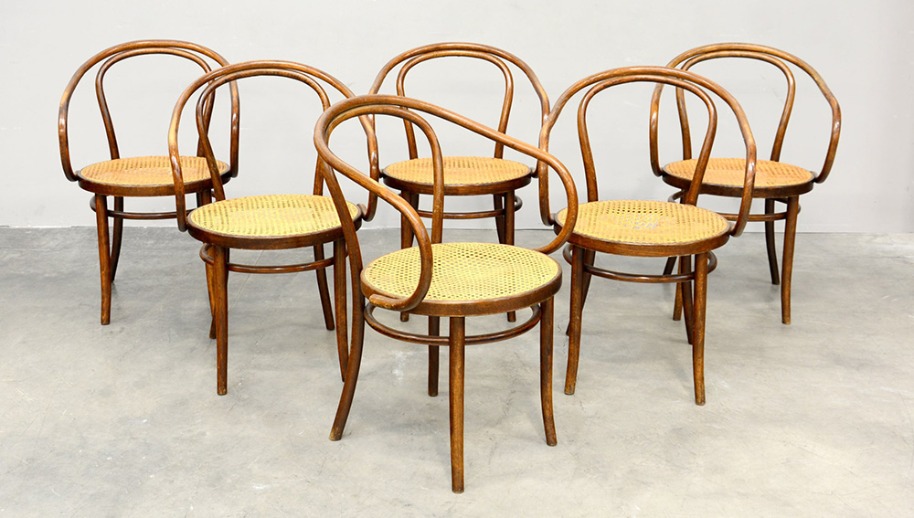 Lotto 573 | Gruppo di sei poltroncine in faggio curvato. Produzione ZPM Radomsko,...