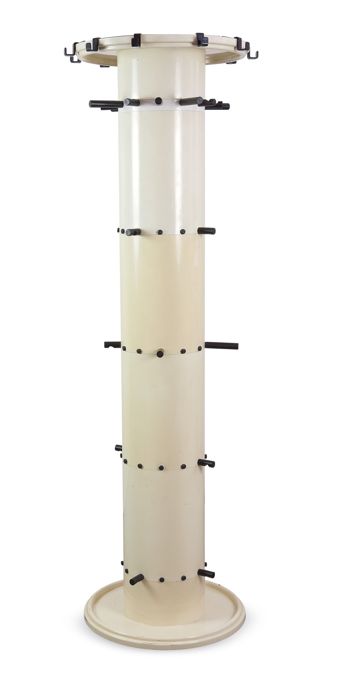 CASTELLI FERRIERI ANNA – 4780, Sistema appendiabiti, in resina composto da cilindri sovrapponibili fissati da elementi filettati. Prod. Kartell dal 1977 al 1980. H cm 170, diam 50. Bibl.: www.kartell.it - Museo virtuale Kartell