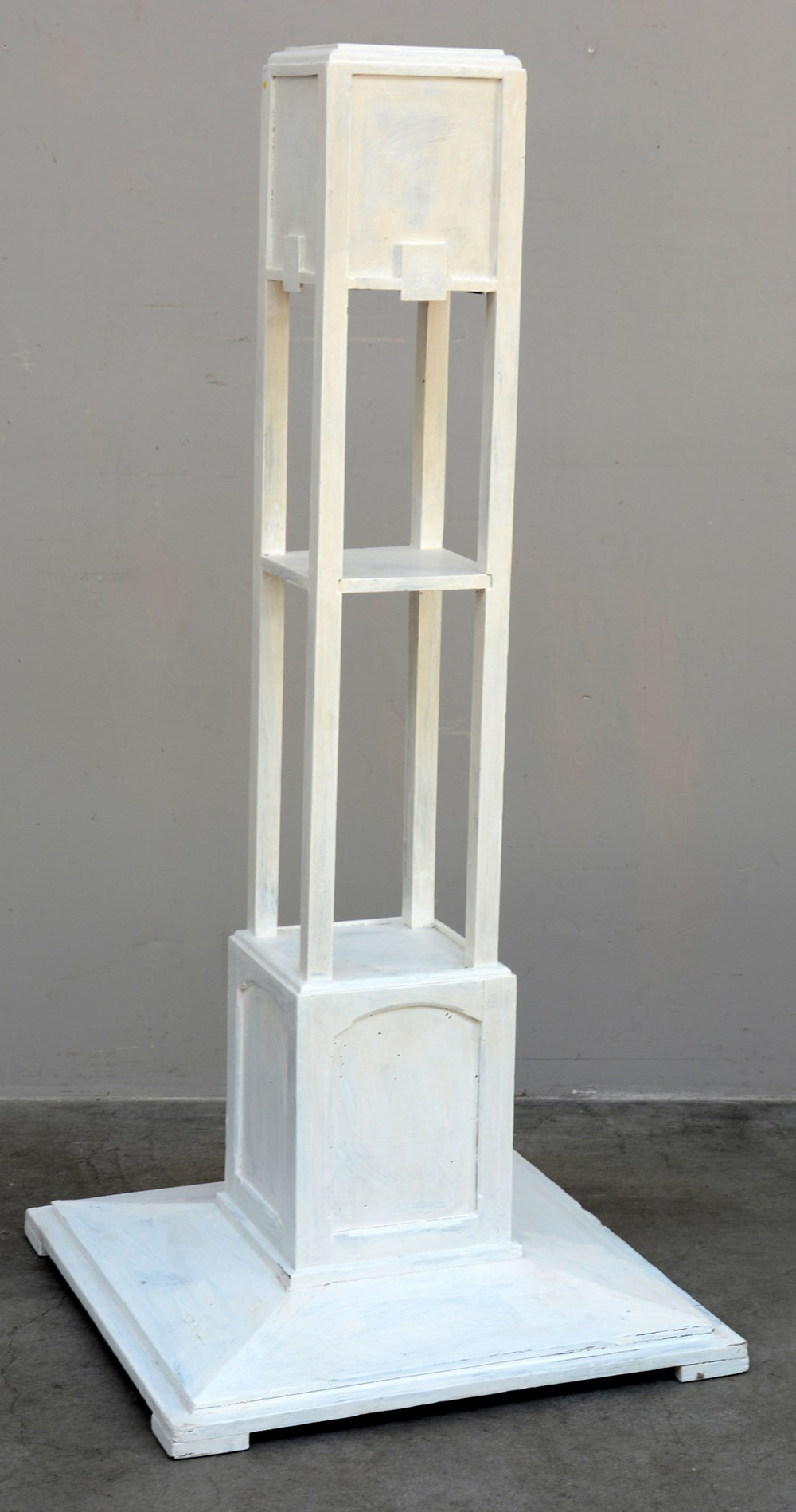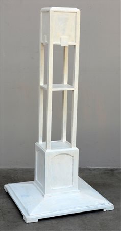 Portascultura Art Nouveau in legno laccato bianco a tre ripiani, inizio sec. XX (h cm 144) (lievi difetti)