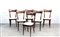 Lotto composto da sei sedie con schienali ricurvi rivestite in skai bianco....