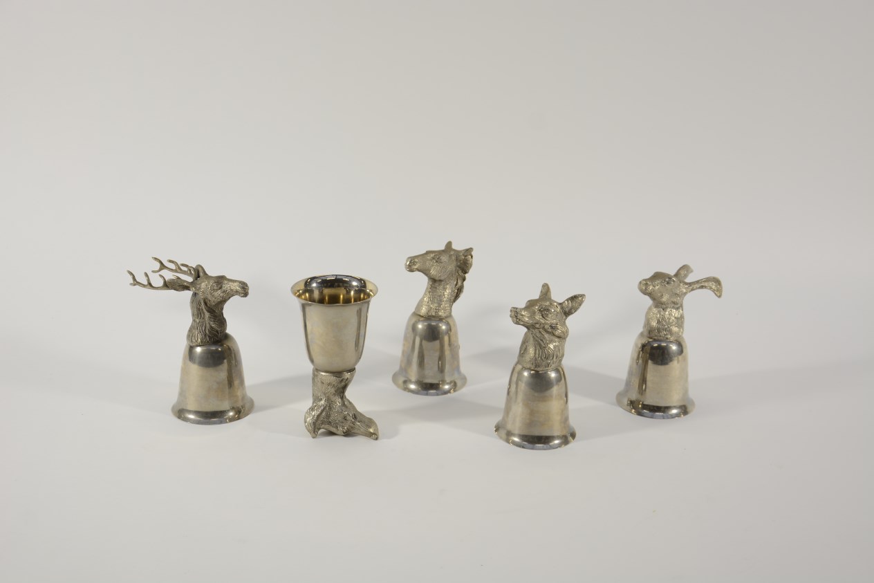Lotto composto da cinque coppe in metallo con teste di animali (h cm 14)