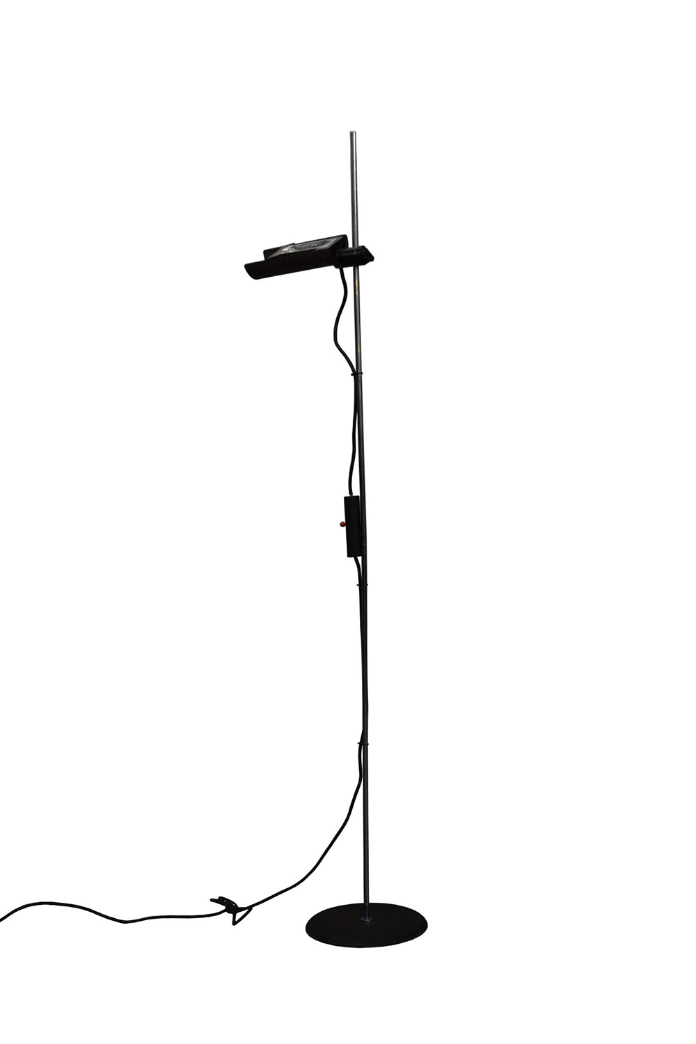 Vico Magistretti Milano (1920- Milano 2006) Lampada da terra modello "ADIM 303 DF". Produzione O-Luce, Italia 1975. Acciaio cromato e verniciato nero (h cm 203) (difetti)